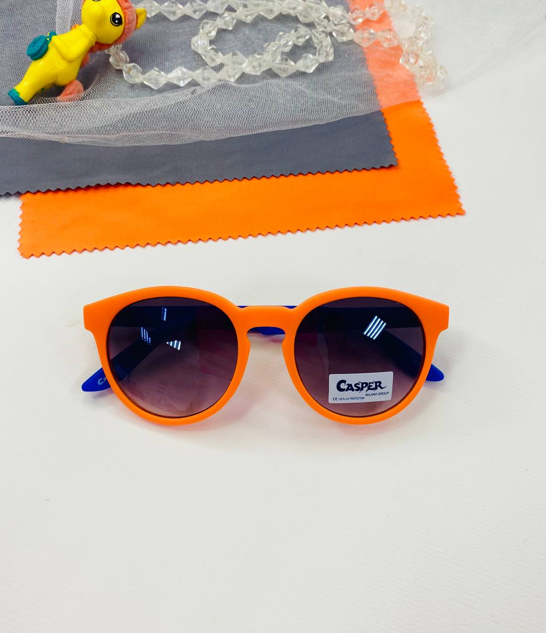 Детские солнцезащитные очки Casper К76 оранжевые с синими дужками