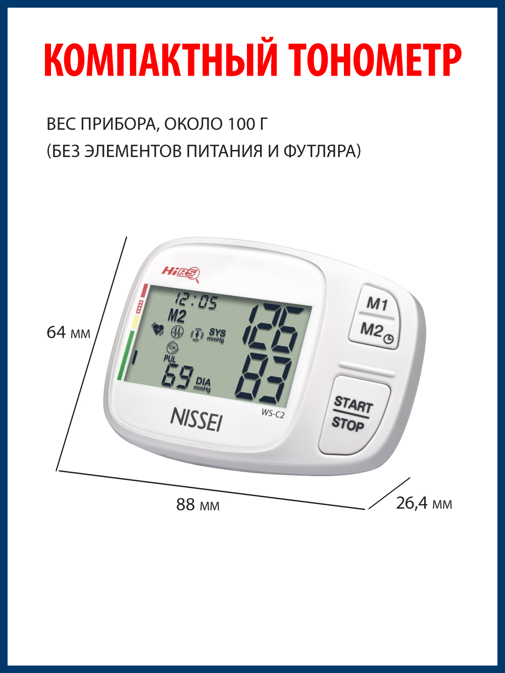 В комплекте уникальная манжета M-Cuff, которая разработана и запатентована компанией Nihon Seimitsu Sokki. Манжета обеспечивает считывание пульсовой волны сразу с двух артерий запястья, что повышает точность измерения.