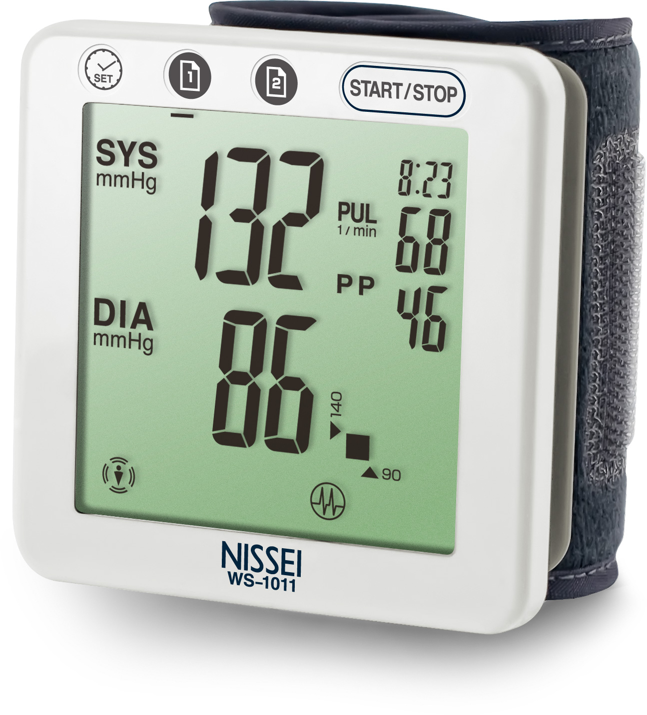 Автоматический тонометр WS-1011 обладает легким сенсорным управлением, а плоский, 15-ти значный жидкокристаллический дисплей с большими цифрами позволяет считывать данные измерений даже людям с ослабленным зрением.