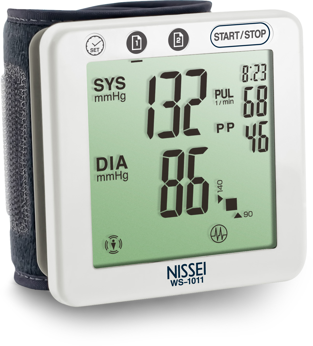 WS-1011 автоматически определяет уровень накачки давления в манжете, благодаря чему процесс измерения становится более комфортным. Также тонометр имеет функцию индикатора помех, которая сообщает о наличии внешнего шума, влияющего на результат измерения.