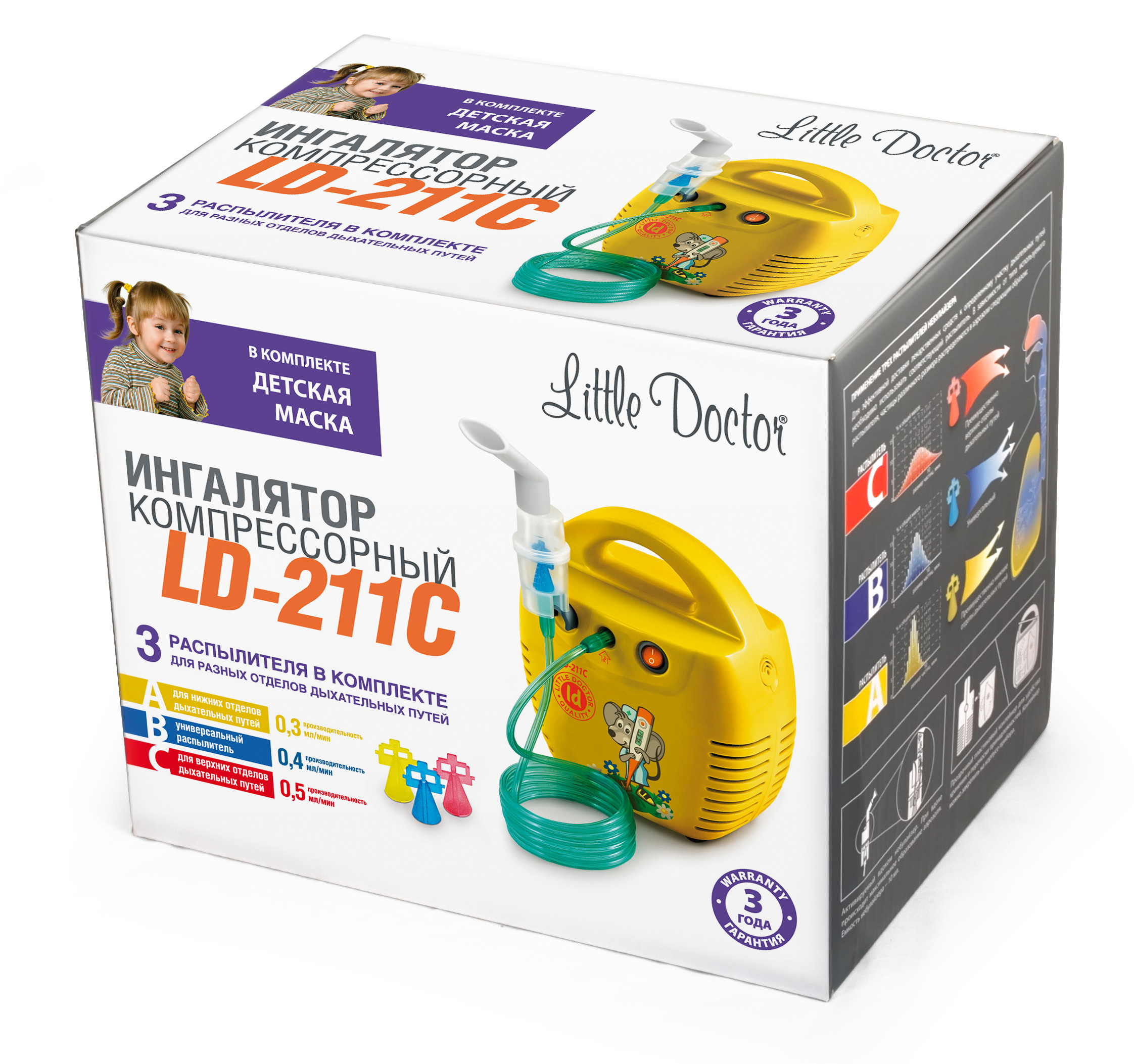 Компрессорный ингалятор LD-211C позволяет использовать любые лекарства, предназначенные для ингаляции, что делает прибор незаменимым для использования как в лечебных учреждениях, так и в быту.