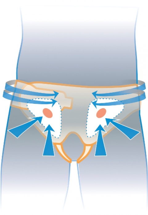 Препятствует прогрессированию паховых и бедренных грыж, уменьшает болевой синдром, надежно удерживает грыжу во вправленном состоянии. Обеспечивает плотное прилегание аппликатора в области грыжевых ворот, надёжно удерживая грыжу во вправленном состоянии.
