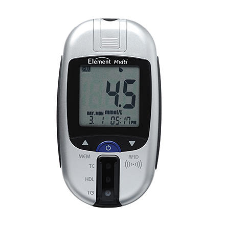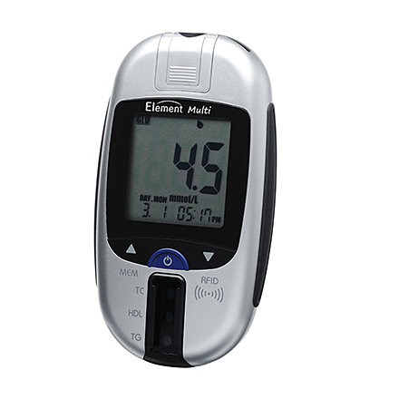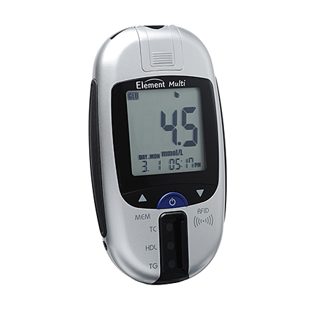 Element Multi - это портативный экспресс-анализатор глюкозы и липидов в капиллярной крови. Он позволяет определить глюкозу, общий холестерин, липопротеины высокой плотности (ЛПВП), и липопротеины низкой плотности (ЛПНП), а также триглицериды в крови.